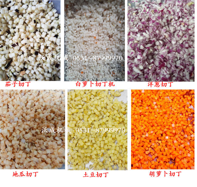 主要用于:土豆 萝卜 胡萝卜 地瓜  芋头 莴笋 黄瓜  茄子  辣椒  莲藕  苹果  梨  猕猴桃  菠萝  哈密瓜 草莓 黄桃 火腿肠等切丁或块。